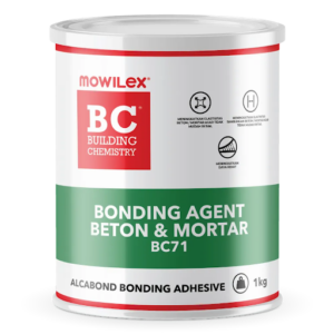 Untuk mengatasi tantangan tersebut, penggunaan bonding agent menjadi solusi yang sangat penting. Salah satu produk yang dirancang khusus untuk kebutuhan ini adalah BC-71 AlcaBond dari Mowilex Building Chemistry. Produk ini berfungsi sebagai perekat beton lama dan beton baru, sekaligus meningkatkan kualitas plesteran, screed, dan pekerjaan perbaikan beton lainnya.